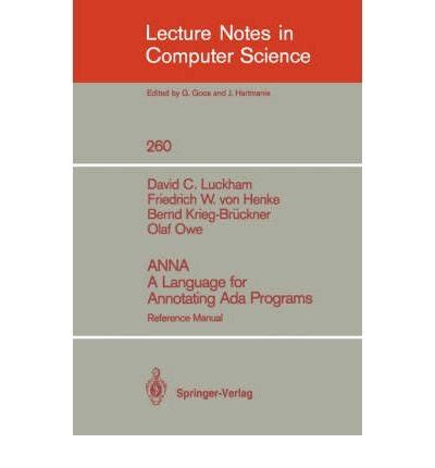 Download Anna A Language for Annotating Ada Programs: Reference Manual 1st Edition Doc By Click Button. Anna A Language for Annotating Ada Programs: Reference Manual 1st Edition it’s easy to recommend a new book category such as Novel, journal, comic, magazin, ect. You see it and you just know that the designer is also an author and understands the challenges involved with having a good book. You can easy klick for detailing book and you can read it online, even you can download it
